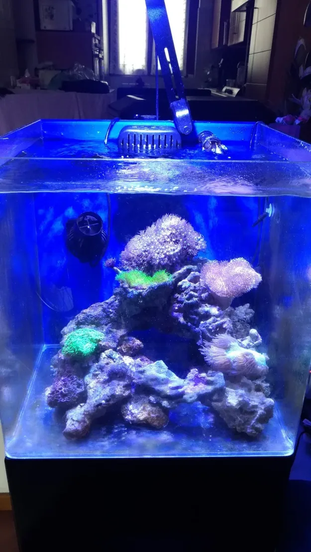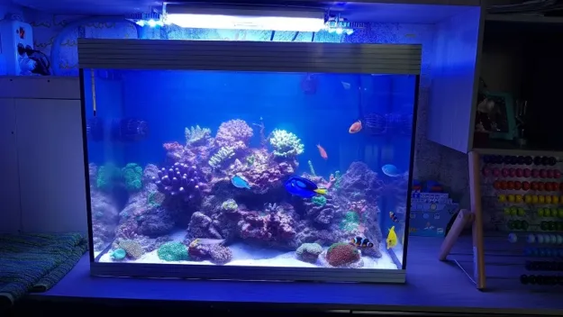 I have a 40 liter 40x39x30 aquarium with a 20-liter sump / refugium. Skimmer Tunze 9001, lights maxpect razor 70 watt, 1 jecod jebao rw4 pump. I have 3 fish, 4 shrimps, sps, lps and soft corals.