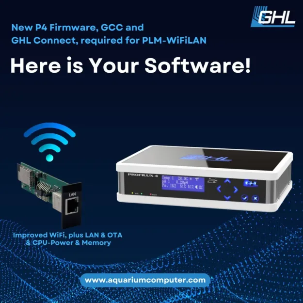 The PLM-WiFiLAN expansion card enhances ProfiLux 4/4e controllers with improved WiFi performance and a LAN port, enabling firmware updates via WiFi or Ethernet through the GHL app. This upgrade offers faster communication, a more stable WiFi signal, and increased memory and processing power, facilitating future enhancements and features for advanced aquarium management.