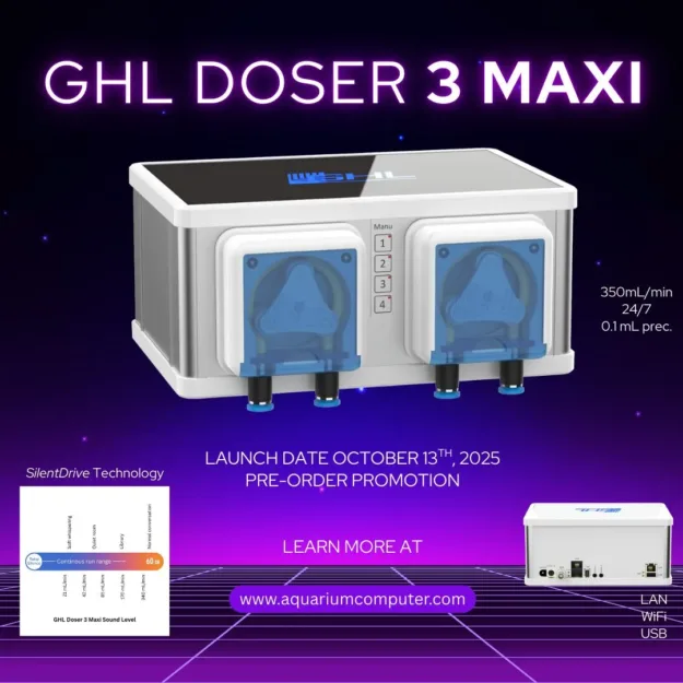 The GHL Doser 3 offers cutting-edge dosing technology with high-precision planetary gear drive and robust 24V stepper motors. It features smart connectivity options, including LAN, WiFi, and USB, complemented by over-the-air (OTA) firmware updates for seamless user experience. Available in Standalone and Extension models, it integrates with ProfiLux systems for scalable expansion. Ships June 9 with pre-order perks.