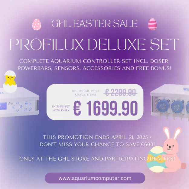 Elevate Your Aquarium Experience This Easter with the ProfiLux Deluxe Set – Save €600! This Easter, GHL is excited to offer aquarists an unparalleled opportunity to enhance their aquarium systems with the ProfiLux Deluxe Set. Designed for both marine and freshwater enthusiasts, this comprehensive bundle integrates cutting-edge technology to provide precise control and automation for…