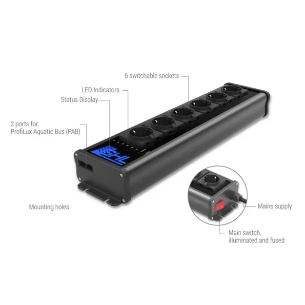 The all new Powerbar 6E-PAB – available now as single item and included in our new aquarium controller sets. elegant and stylish design 6 sockets individually switchable, up to 15 A each individual current measurement according to highest quality standards Read more …