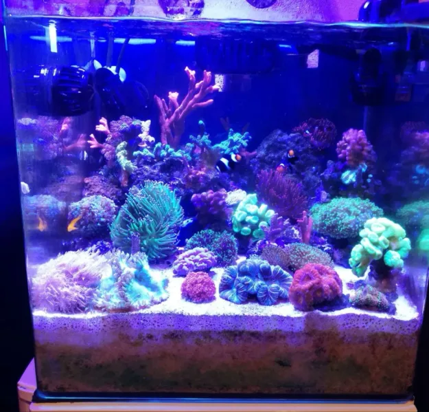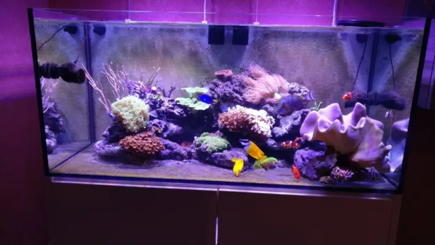 my aquarium is a 240 liter marine reef currently operated with skymmer 45 kg of live sump rocks with algha chaetomorpha and live rocks reactor calcium with aragonite