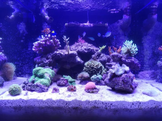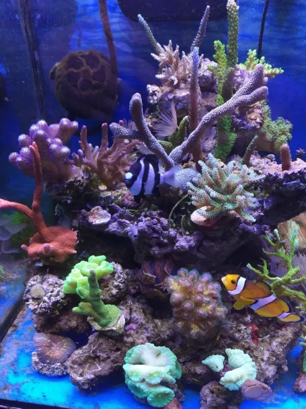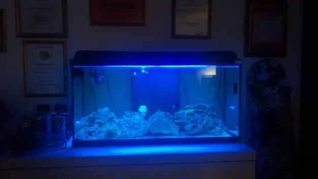 my aquarium started on 01 September 2019 95 * 50 * 70h dsb, 4xt5 aquaristic lighting + 2 modules Ai led, pump electronic movement, sump with skimmer, some rocks I had already a year as well as some fish, I think if I win the bars will replace the old t5 neon with your bars…