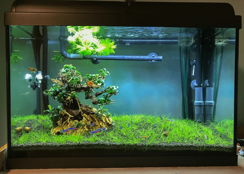 Hello I have a small fresh water aquarium, based on a local Irish landscape. I have a bonsai tree which is growing out of dragon stone, similar like the bend trees around Irish Sea. Green grass is like meadow for ship and bucephalandra wavy leaf is like holy tree. In the aquarium currently I have…