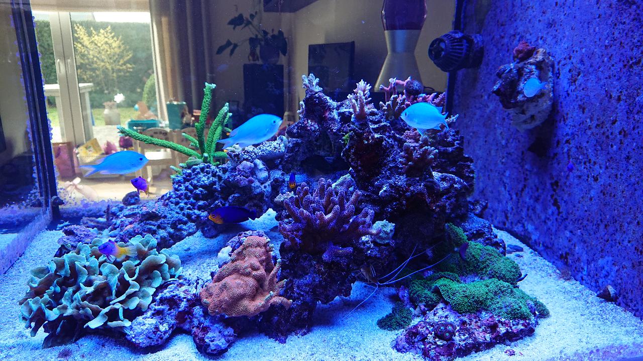 300 ltr Becken mit Pflanzen, Schwertträger, Skalaren und Welse.Gesteuert wird alles über eine Profilux 3.1N, Expansion-Box und xSteckdosenleisteSTDL4-4. Beleuchtung besteht aus 2xMitras-Lightbar1 und 2xMitras-Simu-Stick 90.Es sind zwei Filterkreise verbaut.Erster Filterkreis:Eheim 4+e gesteuert mit GHL Eheim-Controller und UV-Klärer Eheim500.Zweiter Filterkreis:Eheim Ecco200, Nitrat/Phosphat-Filtersäule (2Liter) und Eheim UV-Klärer350.Heizung ist ein Heizstab (Eheim200) und ein Bodenfluter (Dennerle).Die Kühlung besteht…