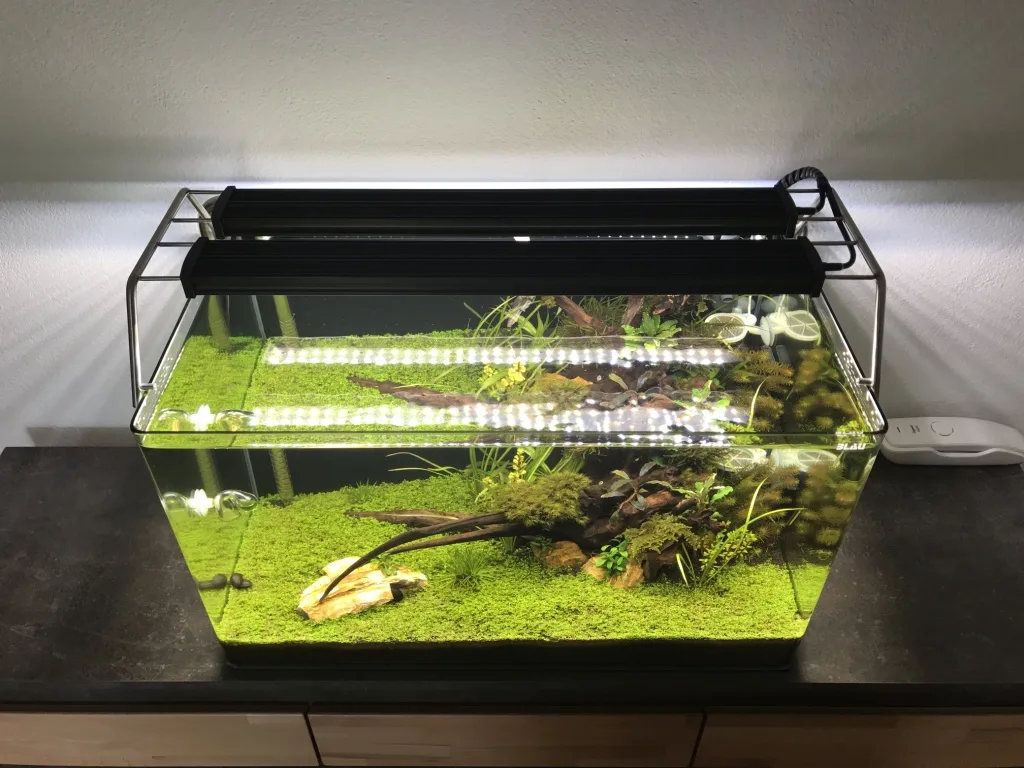 Gewinner Mitras Slimline Wettbewerb Guten Tag, Ich bin stolzer Besitzer eines 1,20m Beckens mit 240l,welches mehrfach am Tage von mir gepflegt wird und es mir so als Ausgleich und Ruheinsel zu meinem doch sehr stressigen Job dient. Doch leider bin ich recht unzufrieden mit meiner momentanen Beleuchtung, die Farben kommen eher blass rüber,und am Boden…
