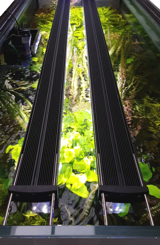 - Bei Ansteuerung durch den ProfiLux Aquariencomputer: Professionelle Lichtdimmung (2 Kanäle getrennt dimmbar pro Mitras Slimline, mit der Zusatzleuchte Mitras Slimline RGB 5 bis 7 Kanäle getrennt dimmbar), individuelle Mischung des Farbspektrums und wassertemperaturabhängige Lichtreduzierung (Licht wird gedimmt wenn Wasser zu warm wird).