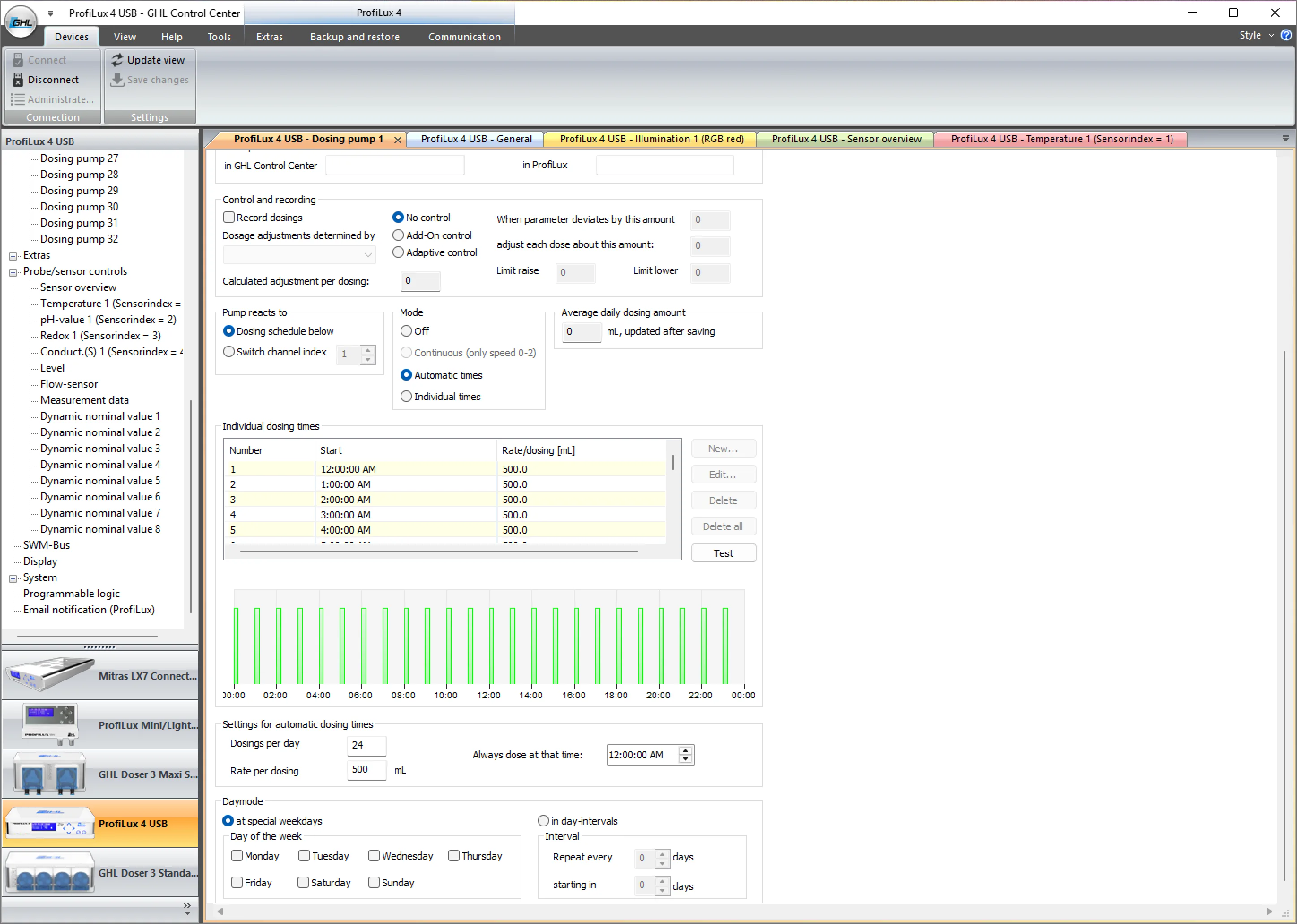 Controller der ProfiLux-II-Serie können ebenfalls mit Ihrem PC verbunden werden. Hierfür benötigen Sie unsere Software ProfiLux Control, die im Downloadbereich kostenlos zur Verfügung steht. Auch damit lassen sich alle Funktionen bequem einstellen.