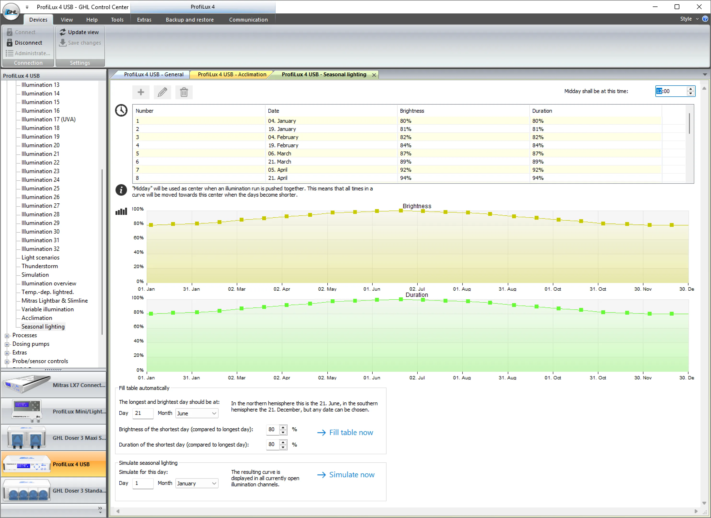 Erweiterte Funktionen konfigurieren, einschließlich saisonaler Beleuchtungssimulationen.