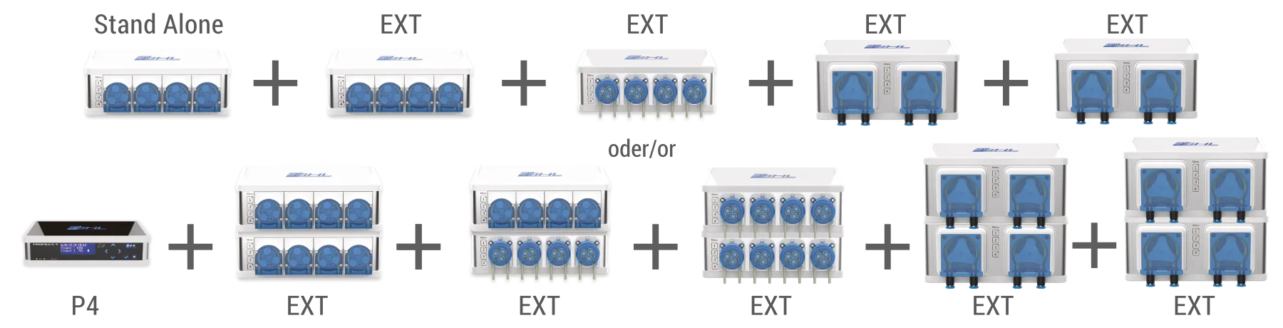- EXT-Modelle können mit dem Doser 3 SA oder dem ProfiLux 4 verbunden werden.