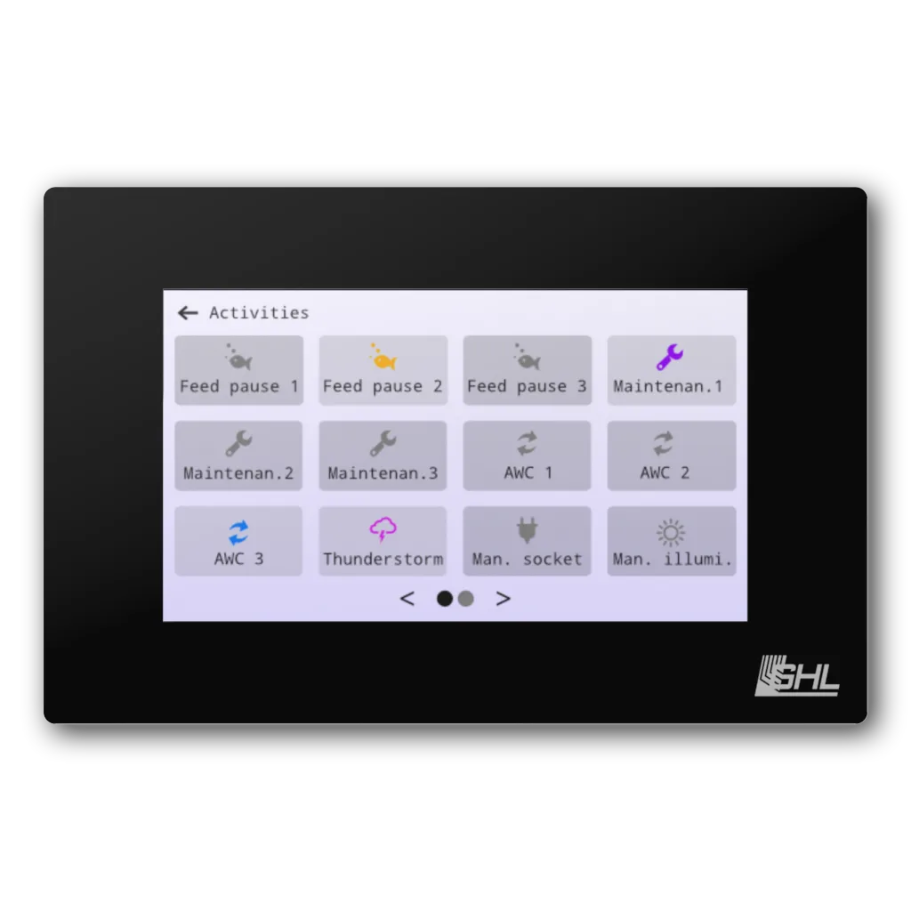 Mit seinem hellen 4,3″-kapazitiven Touchscreen ist das Control Pad für den täglichen Einsatz als dauerhafte, praktische Erweiterung Ihres ProfiLux konzipiert. Sie können Beleuchtungskanäle und Steckdosen manuell steuern, Messdaten anzeigen und Aktionen wie Wasserwechsel, Wartung oder Lichtszenarien auslösen.