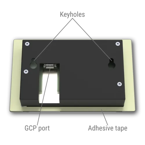 Zur Wandmontage mittels integrierter Schlüssellöcher oder zum flächenbündigen Einbau mit dem Kleberahmen geeignet.