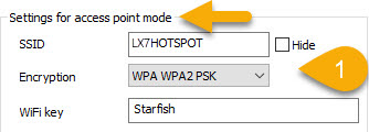 - SSID: Type-in the name you want to give to the LX7’s hotspot signal