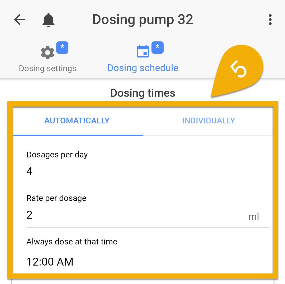 Automatically: Allows you to specify the number of doses per day, amount per dose and time of the first dose.