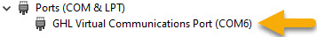 - Click the Refresh port list button and select the COM port number that belongs to your GHL device