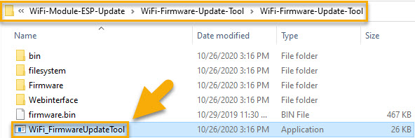- Open the WiFi-Firmware-Update-Tool folder, then open the same folder again and lastly open the WiFi-Firmware-Update-Tool