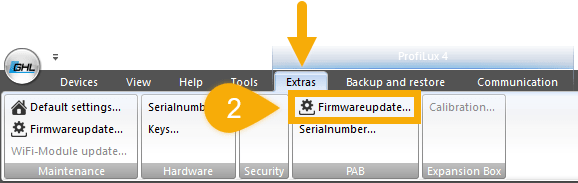 Firmware updates allow your connected PAB-device to benefit from the newest available features and improvements. With the use of GHL Control Center and USB connection, you can update the firmware of your PAB-device by closely following the steps shown below.
