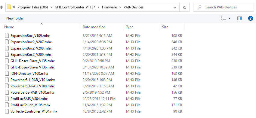 Having the newest version of GCC on your computer gives you access to the newest version firmware files for all GHL devices, including PAB-devices. Make sure you have the newest version installed otherwise you will NOT have access to the newest FW.