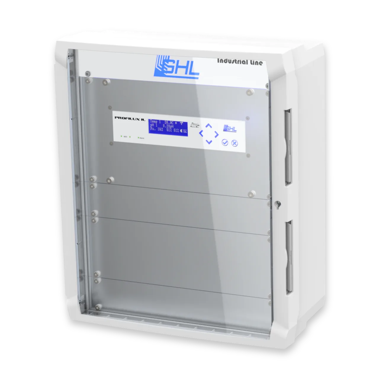 All slide-in units are factory-mounted inside the IP54-rated Basic Housing IL: the ProfiLux IL and Logo Frontpanel are fully wired — Logo Frontpanel connected to its port, all blanking panels installed. The power supply is included but not pre-connected.