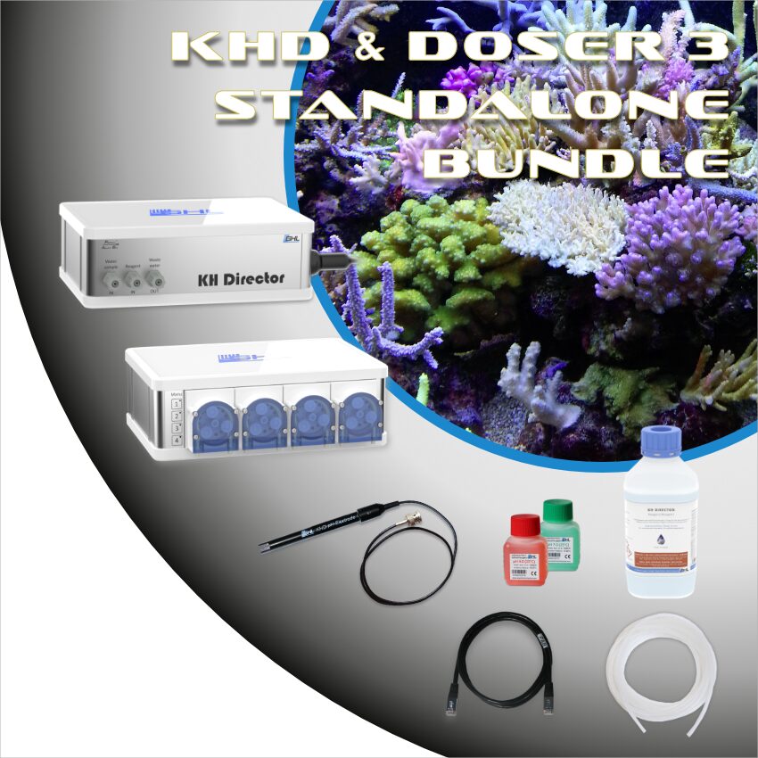The KHD & GHL Doser 3 SA Bundle combines the KH Director with the GHL Doser 3 Standalone to provide a complete, ready-to-use standalone solution for automated alkalinity (KH) measurement and controlled dosing.